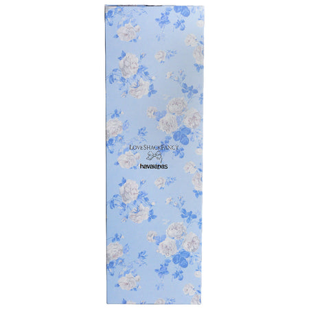 Havaianas and LoveShackFancy team up in a romantic collab full of charm! The world's most beloved flip-flops are blended with the Everyblooming Rosettes print, featuring bouquets of voluptuous flowers roses in shades of light blue, that covers the entire length of the shape. A signature metallic bow and the havaianas logo on the straps completes this exclusive design. Comes with a special vintage-inspired packaging. Take home a piece of this dreamy collab!