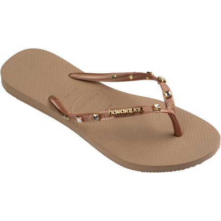 Step into elegance with the Women’s Slim Star SW Flip Flops. Designed with Swarovski star shaped crystal embellishments across slim straps and a tonal Havaianas logo, they bring just the right amount of shine to any outfit. Available in beige, dark brown, and rose gold, these flip flops blend sophistication with everyday comfort.