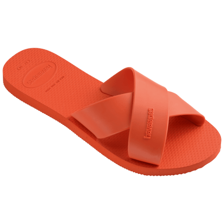Slide into style with the Havaianas Aqua slide, a beach-ready women's sandal with two wide strips that make an easy-to-wear X shape on the front. With a monochrome color palette, these extra fun, orange pop color sandals for women can be dressed up or down for any pool party or summer night out!