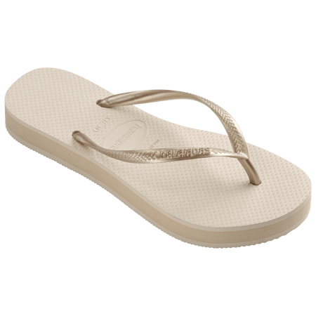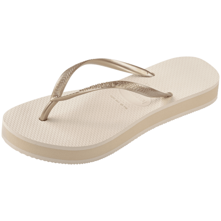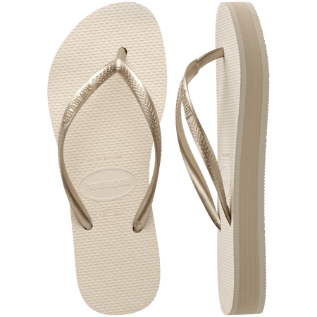 Elevate your look without sacrificing comfort in the women's beige Slim Flatform flip flop. Featuring the best-selling Slim shape with a subtle and stylish boost of height. This style features a heeled flip flop, for an elevated platform look!